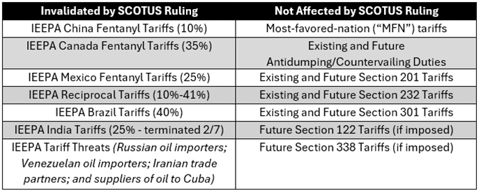 - All trade actions taken under IEEPA have been invalidated.